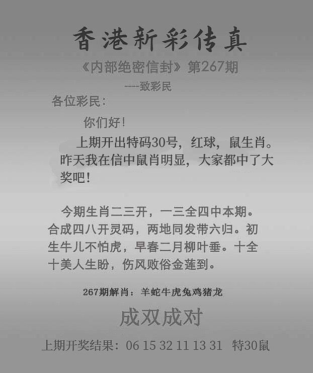 | 266期 | 鸡 | 2头 | 6尾 | 鼠30 |