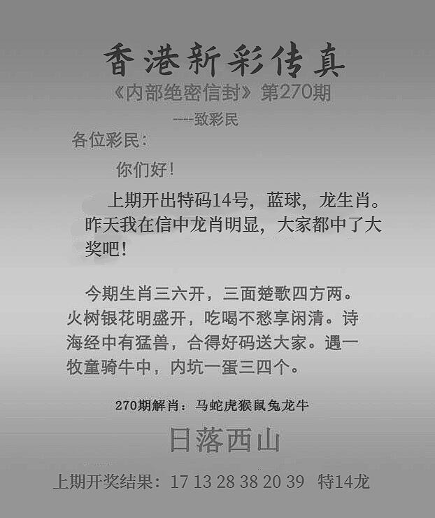 | 270期: ⑤肖 | 猪兔虎龙蛇 | 狗44 |