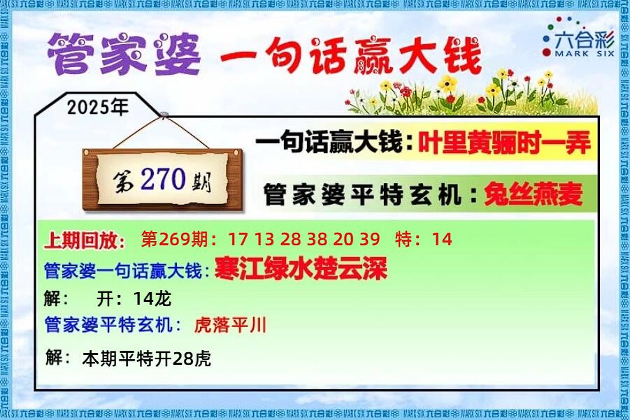 | 269期 | 马 | 0头 | 0尾 | 龙14 |